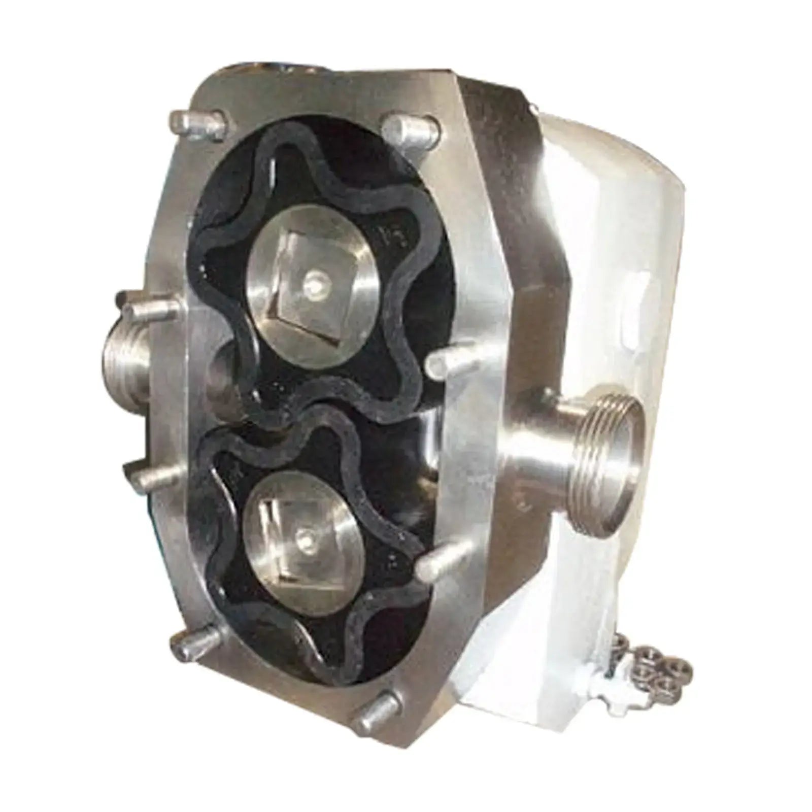 APV Crepaco R-Series Positive Displacement Pump. Model: R4RX. S/N: C-1732. Nominal capacity: 155 gpm. Displacement per Revolution: 0.175 gal. Maximum Speed: 900 rpm. APV Crepaco pumps are known for their rugged, long-lasting, and efficient performance. Every pump in the line has standard a stainless steel body, resilient molded rotors, and a heavy duty cast iron gear case which provides long-lasting, economical service over a wide range of products and applications. Inlets/outlets: (2) 2 in. dia. ACME fittings. Overall dimensions: 1 ft. 2 in. L x 1 ft. W x 1 ft. 4 in. H.
