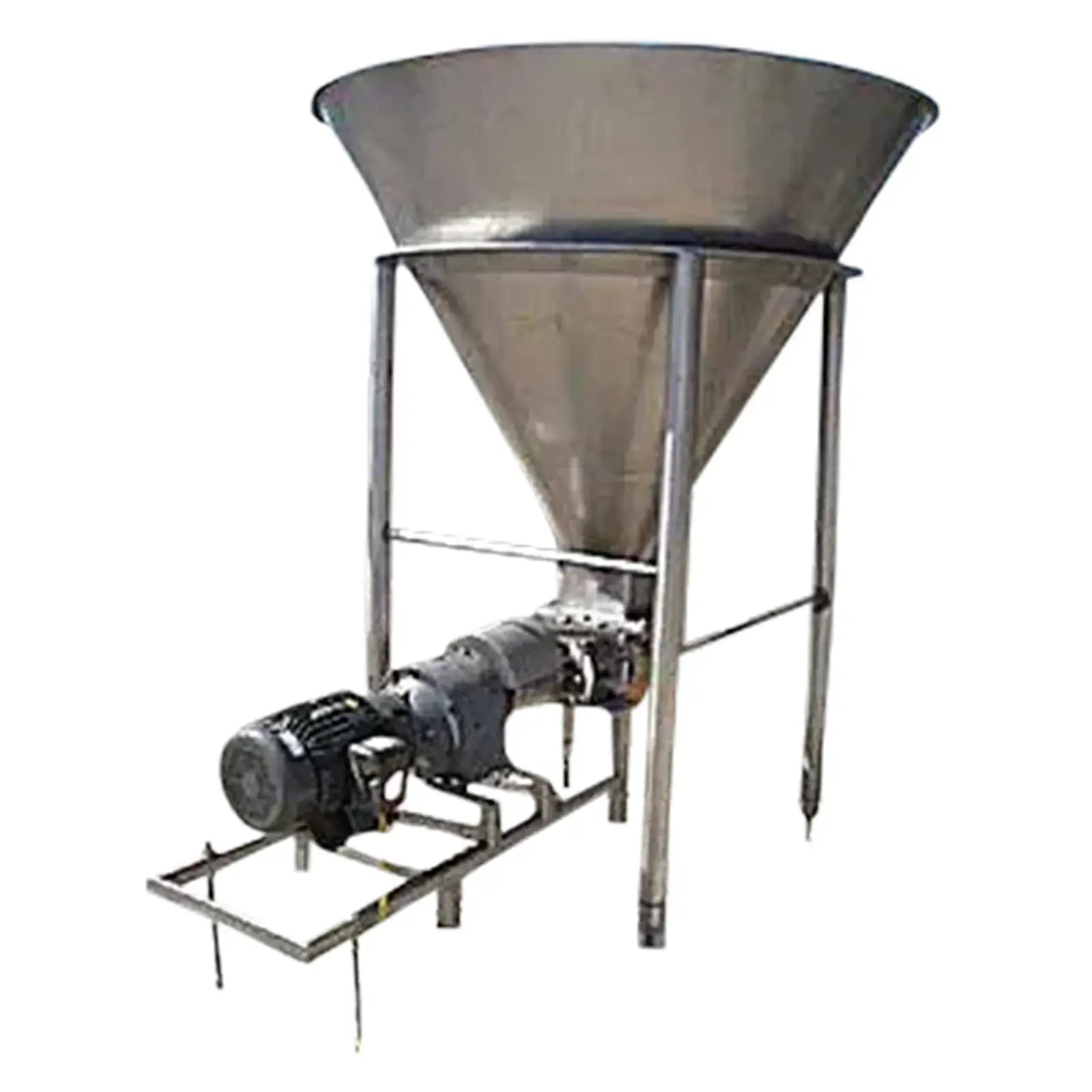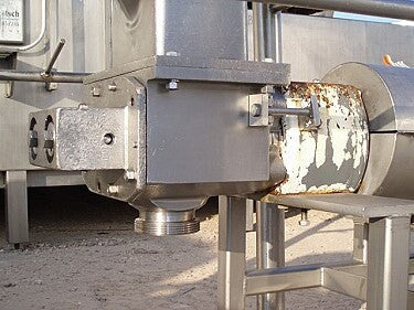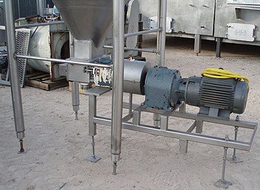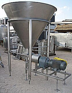 APV Crepaco Stainless Steel Holding Tank and Pump – 300 Gallons. Model: M.H. S/N: C-0611. Infeed hopper diameter: 6 ft. Hopper wall thickness: 0.118 inches. APV Crepaco Positive Displacement Pump with Baldor Industrial Motor, 15 hp, 1760 rpm, 208-230/460 V, 40-37/18.5 amps, 60 Hz, 3 phase. Motor drive. Inlets: (1) 9 in. L x 6-1/2 in. W infeed. Outlets: (1) 4 in. dia. discharge ACME fitting. Overall dimensions: 7 ft. 11 ft. L x 6 ft. 1 in. W x 7 ft. 9 in. H.