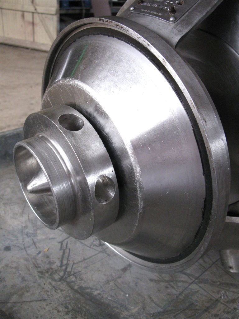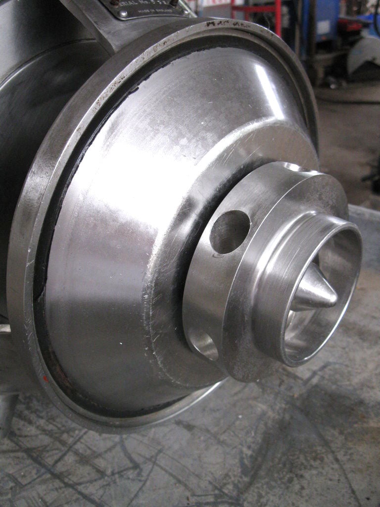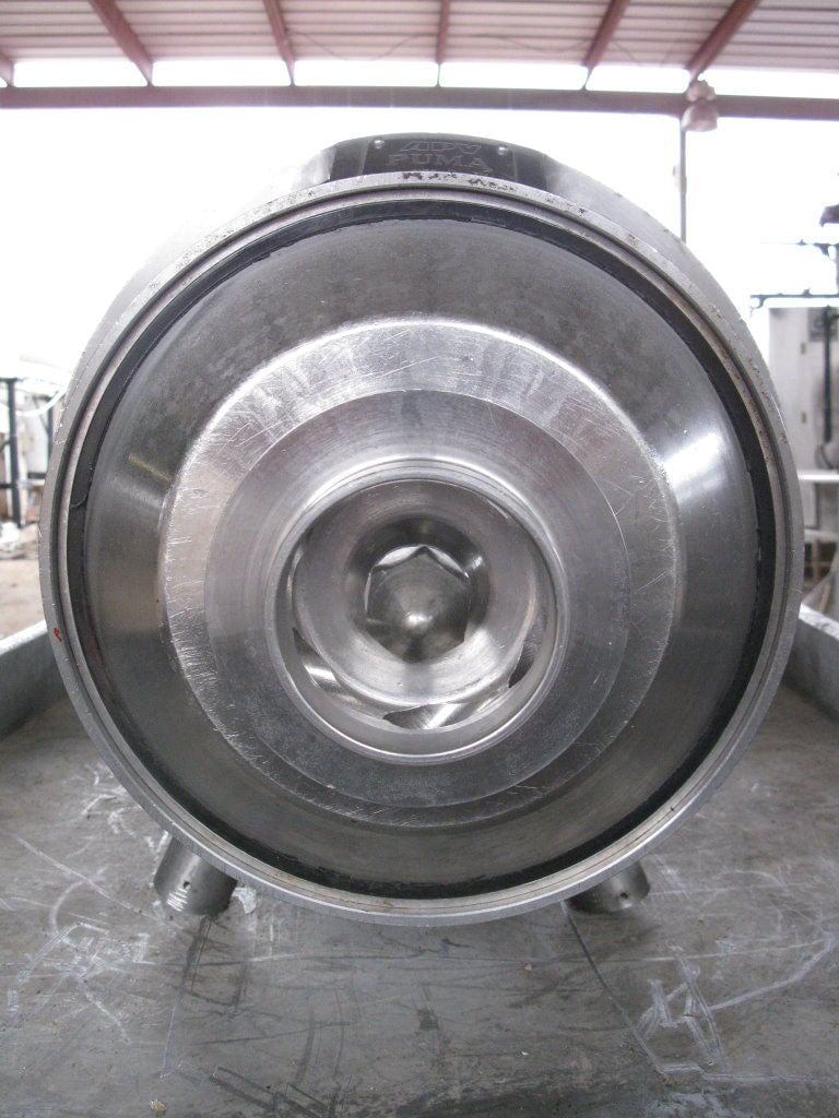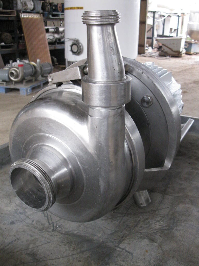 APV Puma III Series Sanitary Centrifugal Pump. Model: Puma III. Size: 2-3. S/N: D398. Nominal Capacity: 240 gpm @ 28 psi. Displacement per revolution: 0.068 gal. Maximum speed: 3500 rpm. Impeller diameter: 4-3/4 in. Discuss with salesperson your process and product to determine if this pump should handle your specific duty. The APV Puma III is designed for use in open work areas adjacent to dairy, food, beverage, and industrial plant processing operations. Inlet: (1) 3 in. dia. ACME fitting. Outlet: (1) 1 ½ in. dia. ACME fitting. Overall dimensions: 2 ft. 5 in. L x 1 ft. 2 in. W x 1 ft. 4-5/8 in. H.