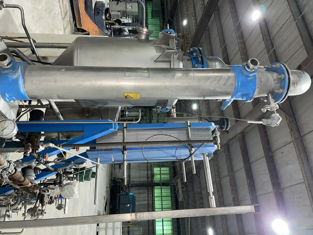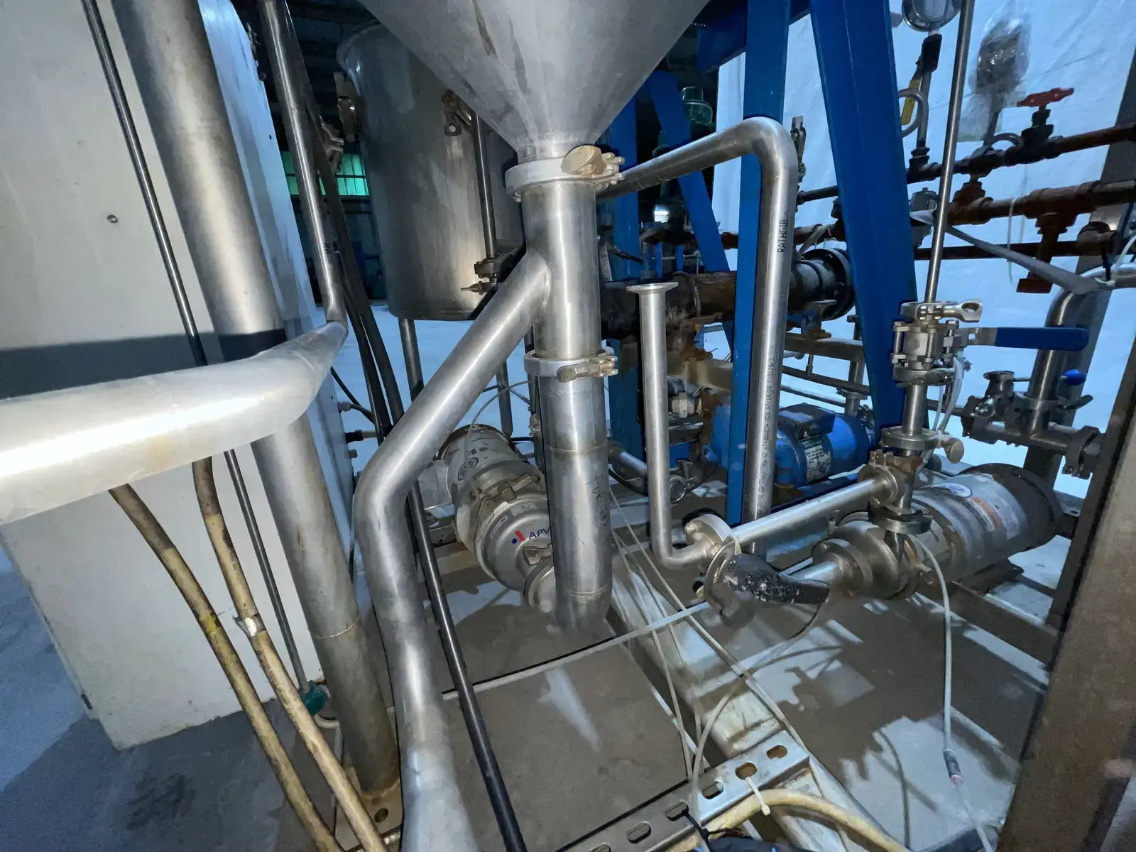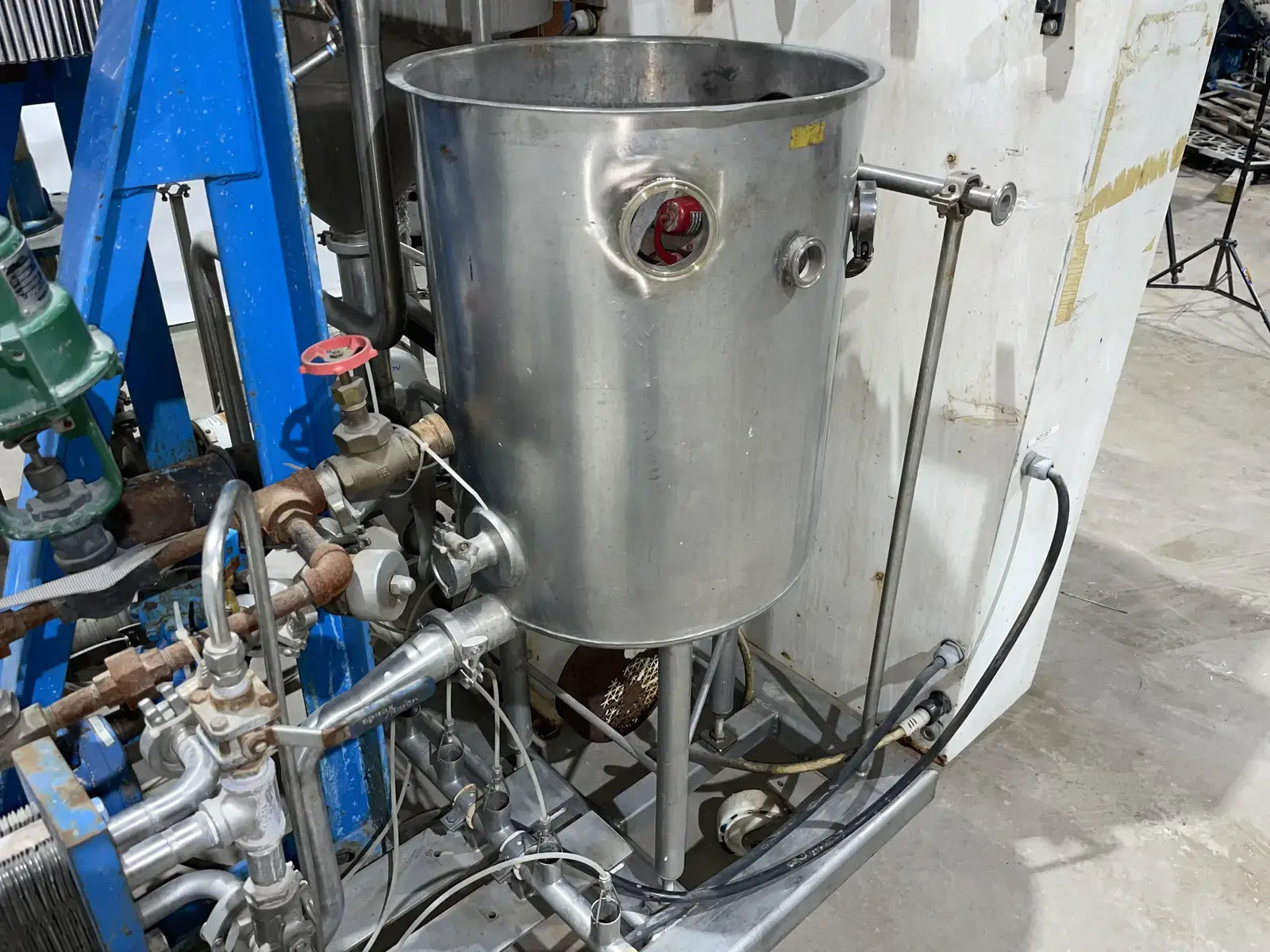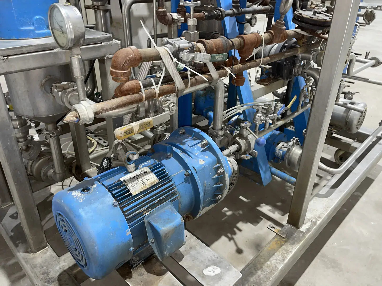 APV Junior (JR) Single Effect Evaporator Skid. Estimated water removal rate: 250-500 LBS/HR. Estimated weight: 4,200 LBS. Dimensions: 94 in. x 92 in. x 10 ft. high.