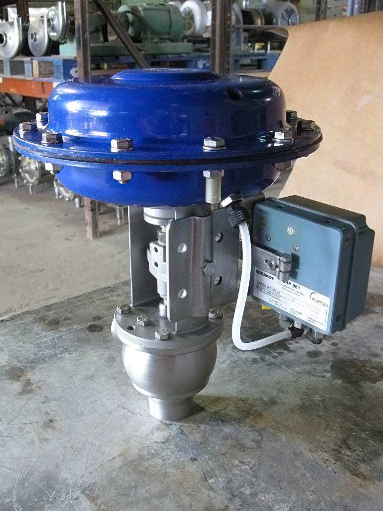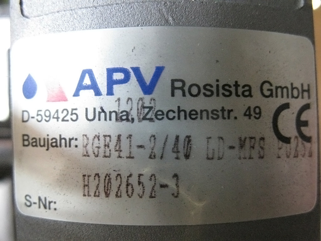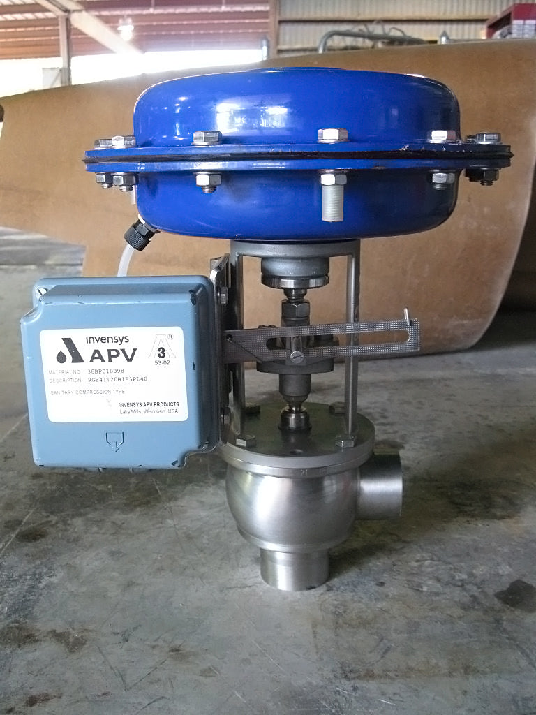APV Pneumatic Valve. Model: RGE41-2/40 LD-MFS P0252. S/N: H202652-3. (1) Eckardt Pneumatic positioner: Model: SRP 981. 90 psi supply air max. (1) APV Invensys Sanitary compressor type: Material no. 38BP818898. Inlet/outlet: (2) 2 in. ports. Overall dimensions: 1 ft. L x 11 in. W x 1 ft. 2 in. H.
