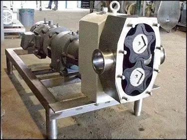 APV R-Series Positive Displacement Pump. Model: R6BS. Flow rate for new pump is 120 gpm with required horsepower and pressure at 80 psi. Discuss with salesperson your process and product to determine if this refurbished pump should handle your specific duty. Reliance electric motor, 5 hp, 1745 rpm, 230/460 V, 12.6/6.3 amps. Gear reducer ratio: 6.2. Final rpm: 281. Inputs/Outputs: (2) 3 in. S-line fittings. Overall dimensions: 4 ft. 2-1/4 in. L x 1 ft. 10 in. W x 2 ft. 3/4 in. H.(ACN110).