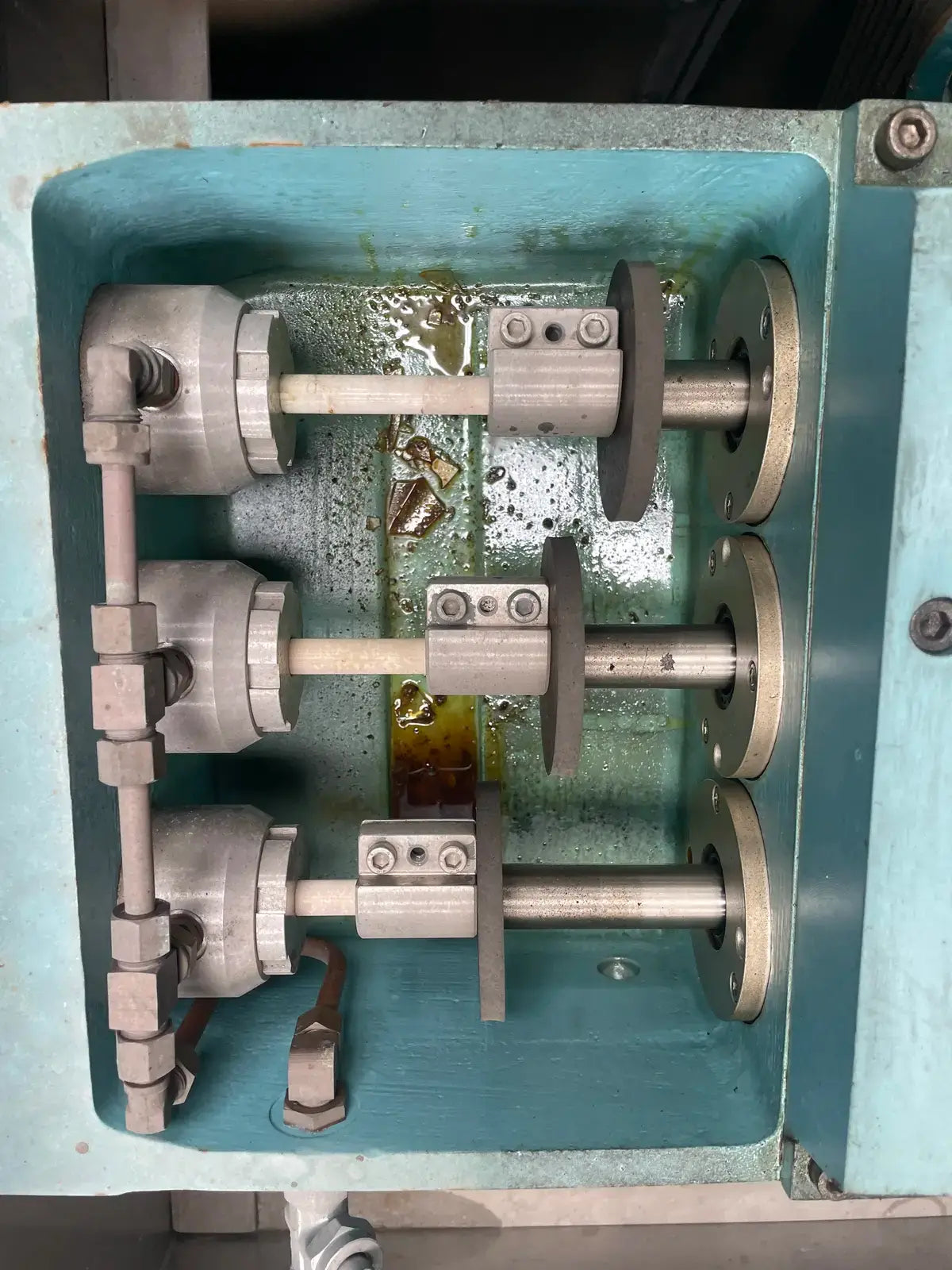 APV Rannie Sanitary Homogenizer. Copenhagen-Denmark. S/N: 1-90 222. Model: LAB. Type: Type: 12.51H. Flowrate: 60-200 LPH (16-52 GPH). Max pressure: 1000 bar (14,500 PSI). Valve seats: ball. Number of pistons: 3. Two stage manual homogenizing valve. Toshiba motor: 10 HP, 220V/460V, 256T Frame, 3-phase. Weight: 1250 LBS. Overall dimensions: 54 in. L x 34 in. W x 49 in. H.