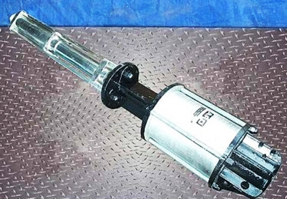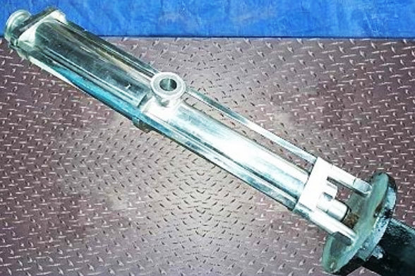 Aro QKD-Series Pneumatic Piston Pump. Model: 650606. S/N: F-702. Pump capacity: 12 gpm at 1000 centipoise. Pneumatic 6'' air motor, ratio: 8 to 1. Two-ball style pump designed to transfer medium viscosity fluids; typically in the range of 1,000 to 20,000 centipoise (from 1 to 20 pascals). Shaft dimensions: 5 in. diameter x 25 in. L. Pump inlet/outlet: 1 in. 'S' line. Overall dimensions: 8 in. diameter x 46 in. L.