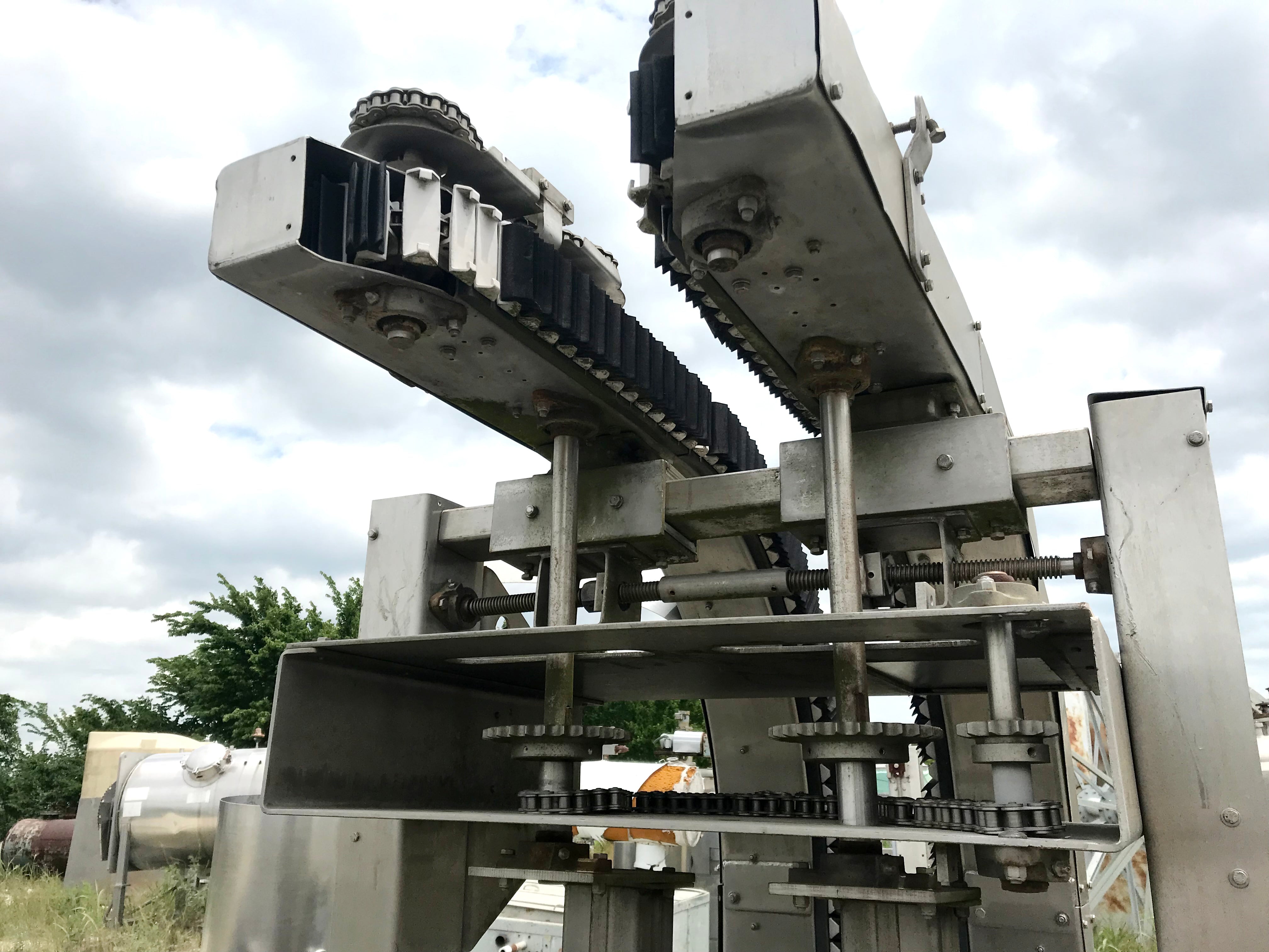 Arrowhead Conveyor Company Bottle Elevator. Model: GRIPPER S-EL. P.O: 10345. S/O and Equip No: 089200SE. Line No: 101. Lines per chain: 192. Maximum opening width: 12 in. Conveyor infeed height: 3 ft. 6 in. Conveyor exit height: 8 ft. 6 in. Overall dimensions: 8 ft. 10 in. L x 3 ft. 5 in. L x 8 ft. 10 in. H.