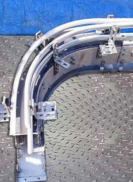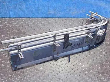 Bottle Conveyor. Track: 478 in. L (total) x 2 in. W. (4) Sections: 120-½ in. L x 12-1/2 in W x 17 in. H; 120 in. L x 12-1/2 in. W x 17 in. H.; 45-½ in. L x 12-1/2 W x 17 in. H, 192 in. L x 12-1/2 in. W x 17 in. H. (U-shaped section). Overall dimensions of U-shaped section: 95-½ in. L x 65-½ in. W x 17 in. H.