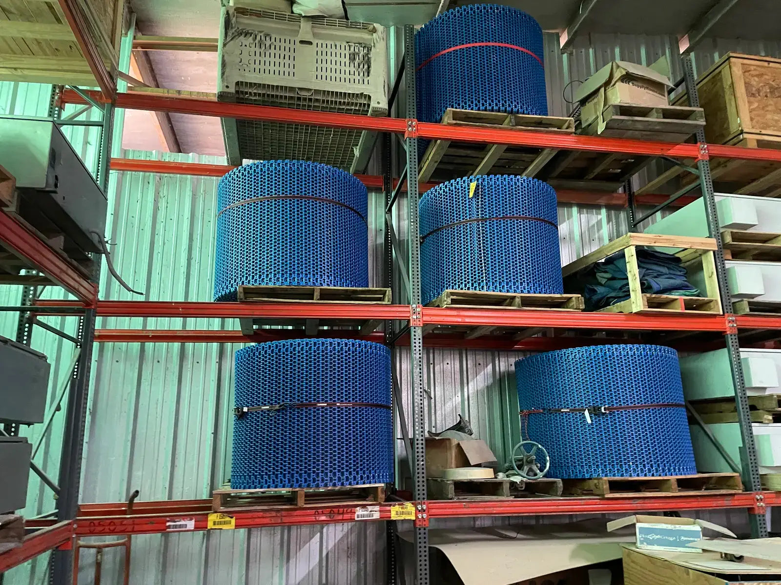 Blue Plastic Belting for Cloudy & Britton Spiral Freezer. (5) rolls. Belt width: 36 inches.