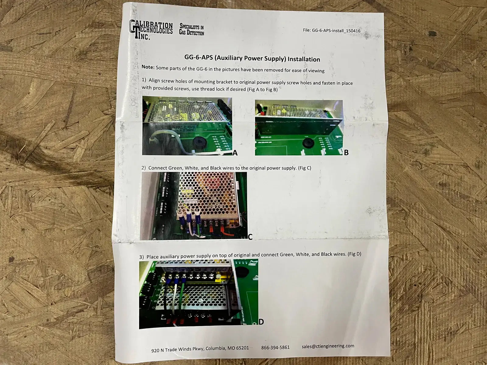 Auxiliary Power Supply. Gas Guardian 6 Power Unit. Model: GG-6-APS. Serial No. EB40200212. Input: 120/240 VAC. 3A/2A @50/60Hz. Output: 24VDC. 6.5A.