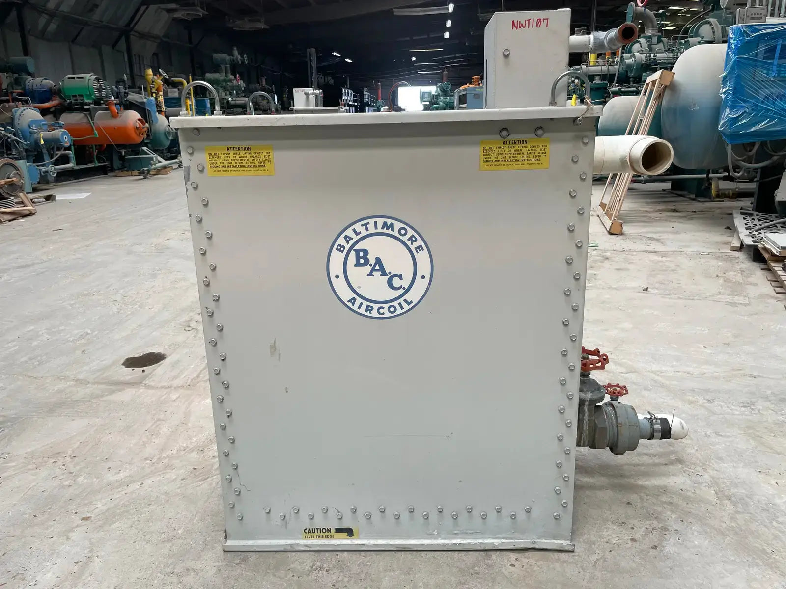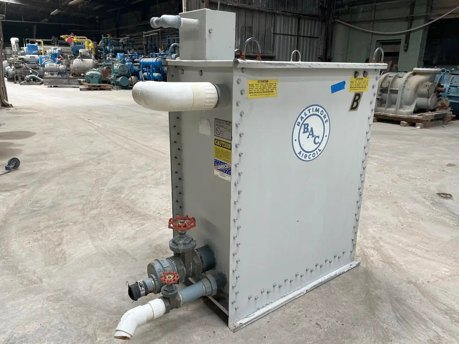 BAC Remote Sump Tank. Model: 3-RS-94R. Serial No: R95400452. Maximum Storage: 94 Gallons. Net Available Volume (Gal): 72 Gallons. Connection(MPT): 4 in.