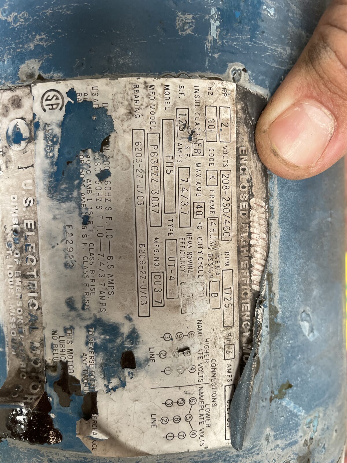 - Motor Hertz (Hz): 60