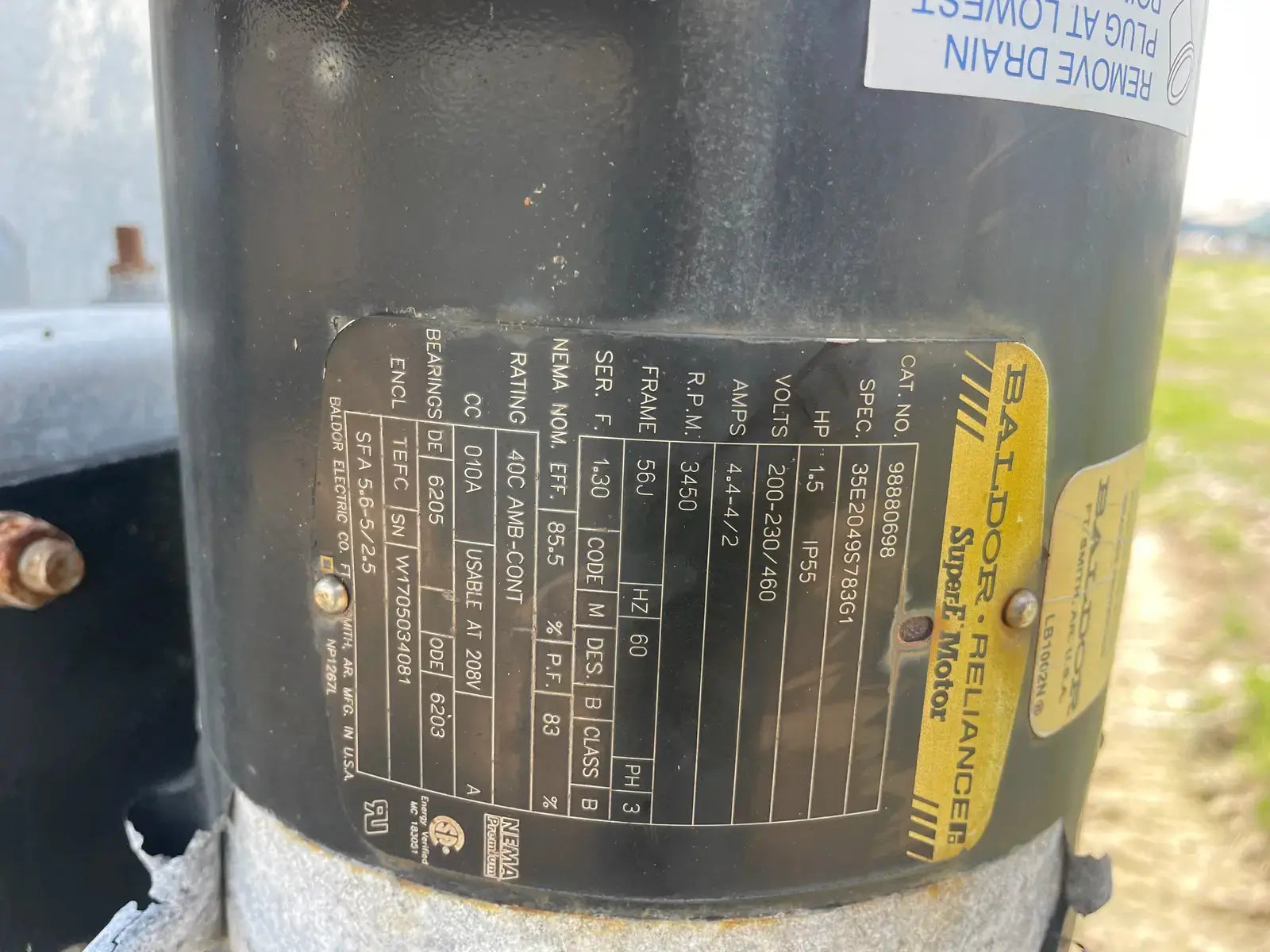 - If Multiple Motors, Motor Descriptions vs specs: (1) Water Pump Motor: 10 HP. (1) Fan Blower: 10 HP