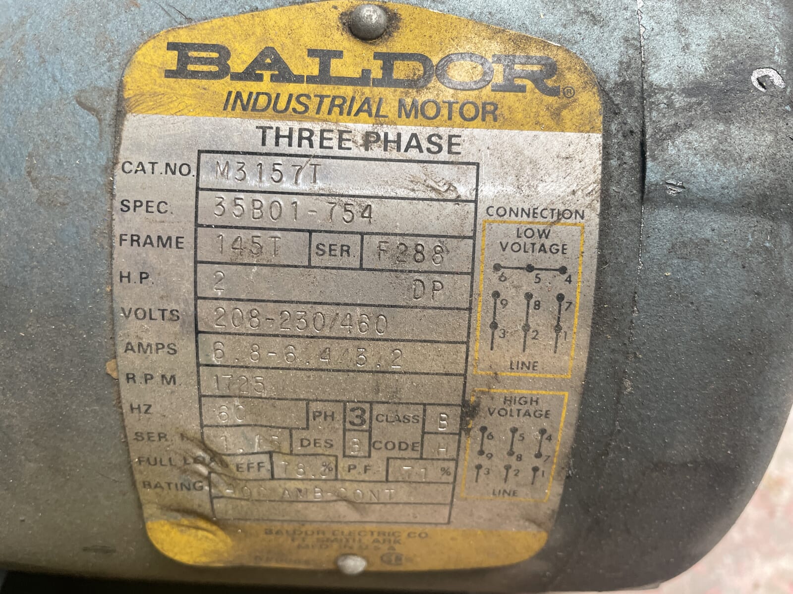 Baldor M3157T Motor (2 HP, 1,725 RPM, 208-230/460 V)