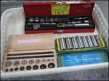 Bin w/ contents including socket sets. (IN-TX).