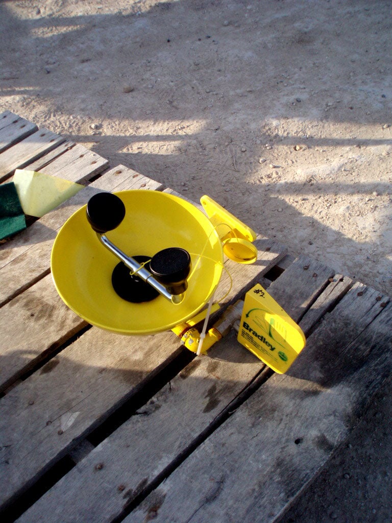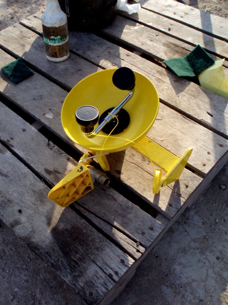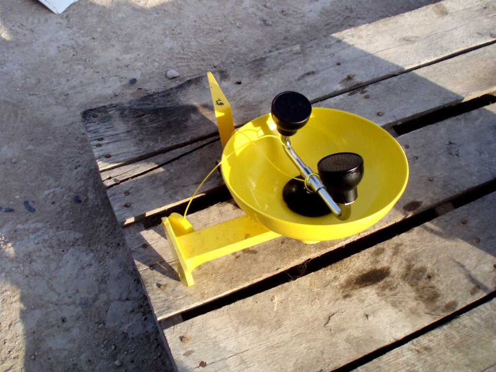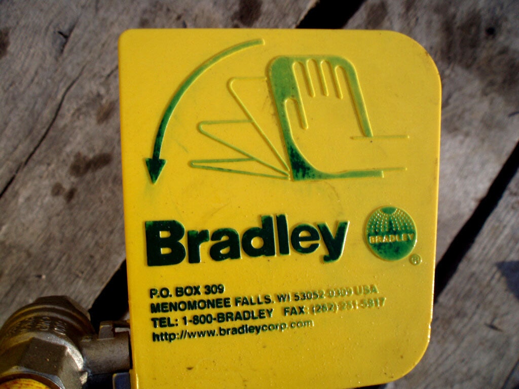 Bradley Eyewash Station. Spray jet diameter: 2 in. Bowl diameter: 6 in. Overall dimensions: 10 in. L x 9 in. W x 10 in. H.