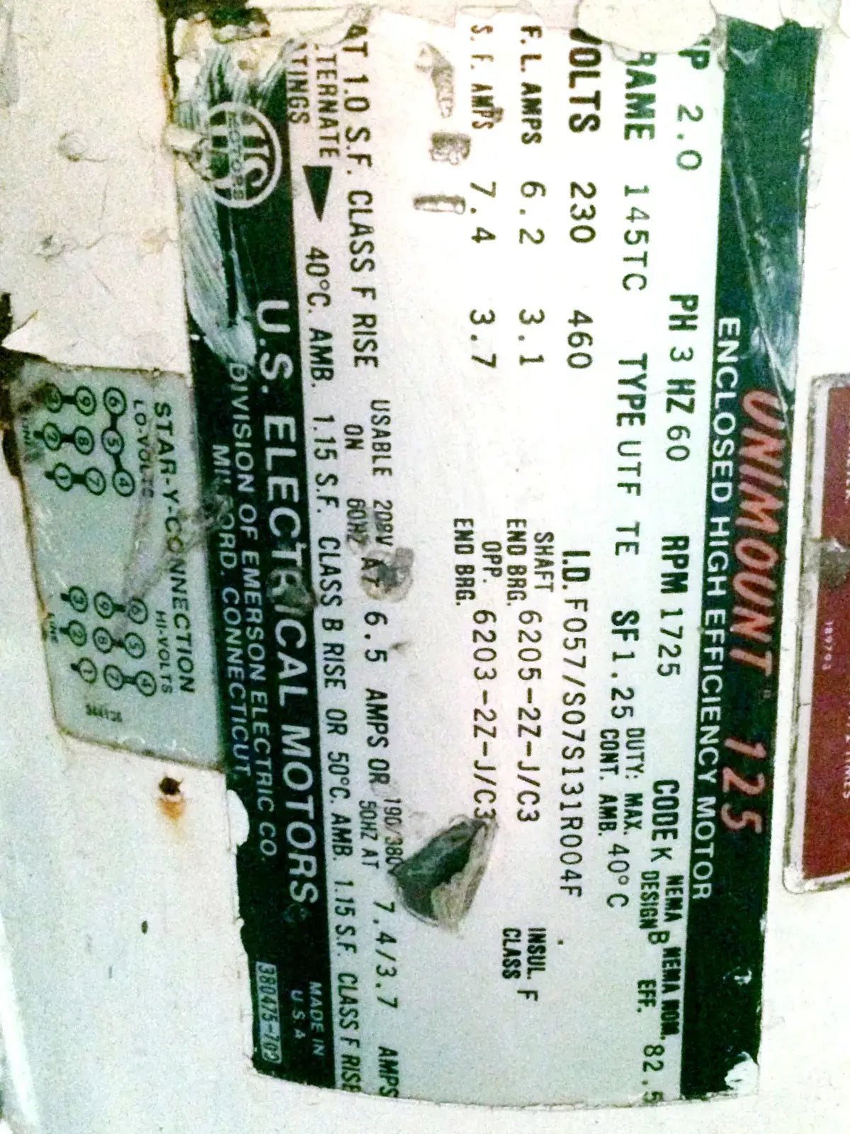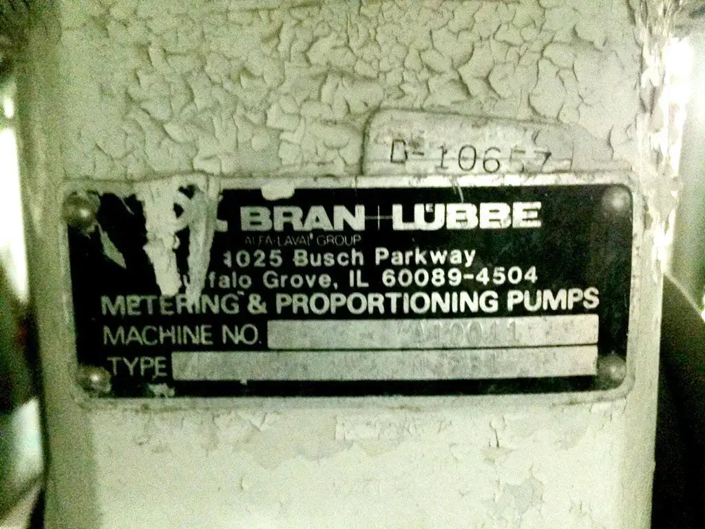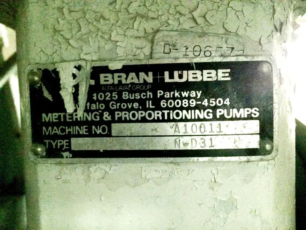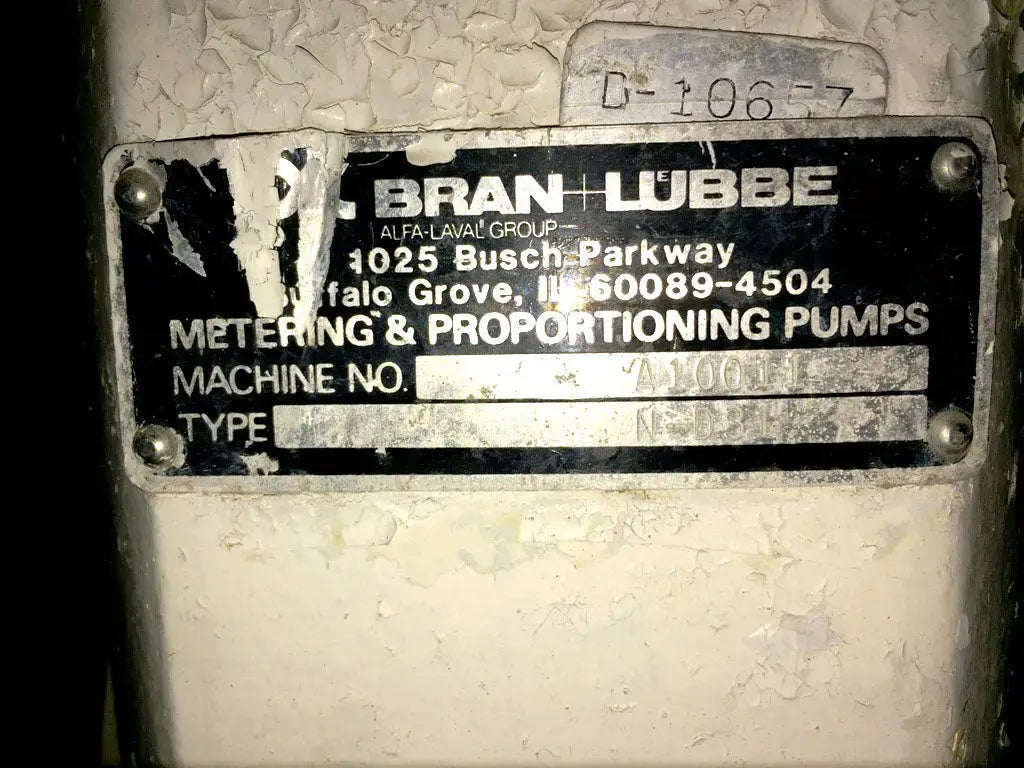 Bran Luebbe Pump. Model: A10011. Serial Number: N-D31. 3 Ph, 208/230/460 VAC, 50/60 Hz.
