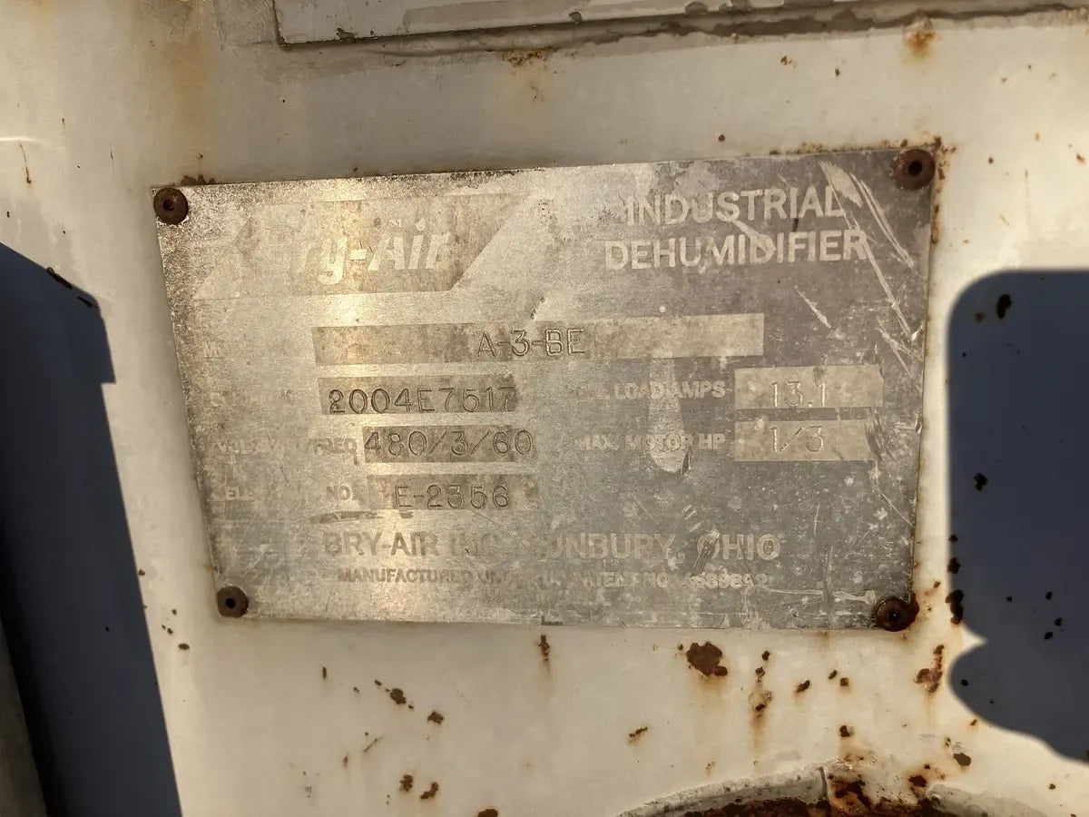 Model No. A-3-BE, Serial No: 2004E7517, Volts/Ph/Hz: 480/3/60 Elec. Dwg. No: E-2356, Full Load Amps: 13.1, Max Motor HP. : 1/3