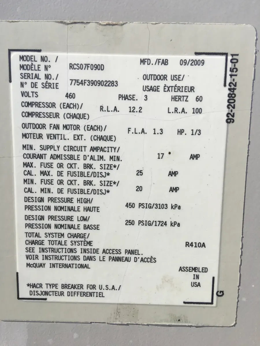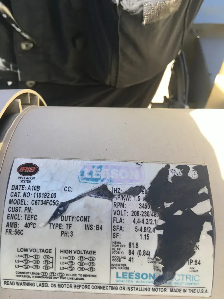 - If Multiple Motors, Motor Descriptions vs specs: Pro. Motor HP: 3 RCT. Motor HP: 1.5