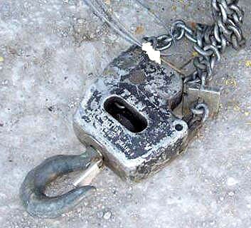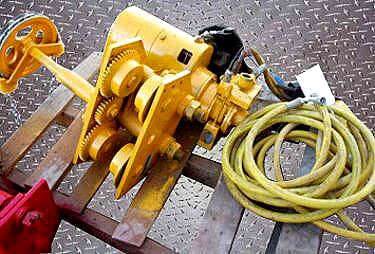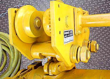 Budgit Chain Hoist- 2 Ton. I-Beam Trolley, Model: M-509872-1, Cat: 900286, Capacity: 6000. Overall dimensions: 28 in. L x 18 in. W x 33 in. H.