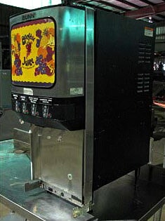 Bunn-O-Matic Corporation Four Flavor Convertible Gourmet Juice System. Model: JDF-4, BA PC LIT. Capacity: (3) 12 ounce drinks per minute (with respective incoming water and outgoing product temperatures of 75°F and 40°F). Refrigerant and specifications: R-134a, 120V, 9.5 amps, 50/60 Hz, 1 phase. The Bunn-O-Matic Gourmet Juice System delivers both frozen and ambient products, and features a frost free refrigerated compartment with drink consistency and quick dispensability assured by the high intensity mixing chambers, “stay clean” valve design. This also comes equipped with a Bunn model EQHP-10CRTG water filter cartridge with a flow rating of 1.5 gpm for the reduction of chlorine and sediment. Shipping weight: 177 lbs. Overall dimensions: 1 ft. 4 in. L x 2 ft. 4 in. W x 3 ft. H.(H17)(ACN33).