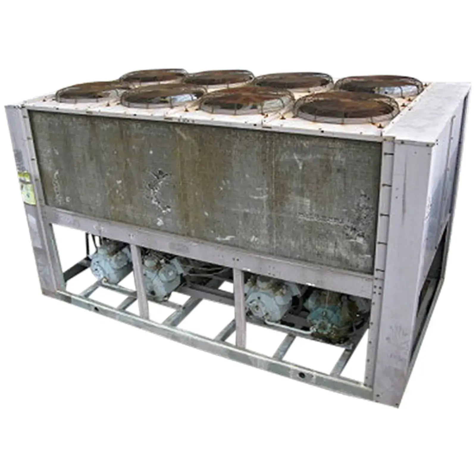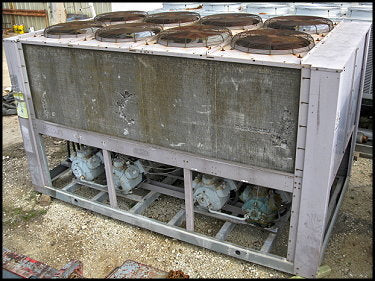 1997 Carrier Air Cooled Chiller. Model: 30GT100 610KA. Rated nominal cooling capacity: 100 tons. Refrigerant: R-22. Respective high and low design/test pressures: 450/278 psi. (3) Carlyle compressors. Model: 06EF275310: 208/230-460V, 60 Hz, 3 phase, or 400V, 50 Hz, 3 phase. (1) Carlyle compressor. Model: 06E6265310: 230/460V, 60 Hz, 3 phase. (8) fans, 6 blades, 30 in. diameter, 1.0 hp, 460V, 60 Hz, 3 phase. Overall dimensions: 15 ft. 2 in. L x 8 ft. 2 in. W x 8 ft. 2 in. H.(H).