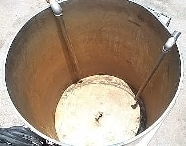 - Tank Inlets & Outlets Description: (1) 1 in. inlets, (1) 3/4 in. inlet, (1) 1-1/2 in. outlet, Inside tank dimensions 26-1/2 in. diameter x 30 in. H, sitting on (4) 6 in. casters,