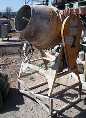 CF Gilco Gilson Concrete Mixer. Pulley ratio: 0.14. Driver pulley: 2 in. dia. Driven pulley: 1 ft. 2 in. dia. Final rpm: 246.43. Dayton Electric Motor, 1/4 hp, 1725 rpm, 115/230 V, 4.6/2.3 amps, 60 Hz, single phase. Overall dimensions: 3 ft. 1/2 in. L x 2 ft. W x 5 ft. 6 in. H.(ACN11).