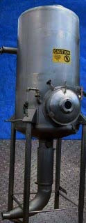 Cherry Burrell Flavorizer Single Shell. Stainless steel. Model AVC-SH. S/N 824. (3) Inlets: 5 in. (top center), 2 in., 3/4 in. (with butterfly valve and spray ball); 16 in. manway. Outlets: 4 in. (20 in. high); jacket on exit pipe. (4) Legs 6 in. H. Inside dimensions: 35-1/2 in. dia x 72 in. H. Overall dimensions: 56 in. L x 51 in. W x 127 in. H.