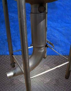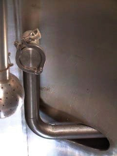 - Tank Inlets & Outlets Description: Inlets: 5 in. (top center), 2 in., 3/4 in. (with butterfly valve and spray ball); 16 in. manway. Outlets: 4 in. (20 in. high); jacket on exit pipe. (4) Legs 6 in. H. Inside dimensions: 35-1/2 in. dia. x 72 in. H.