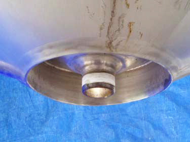 - Tank Inlets & Outlets Description: Jacket inlets/outlets: (4) 2 in. tri-clamp, 1 in. fittings. Bottom outlet: 2 in. Legs: 4 in. dia x 50 in. H. Inner dimensions: 48 in. dia x 12 in. H. Cone section: 48 in. dia x 13 in. H.