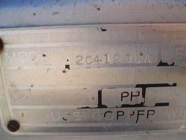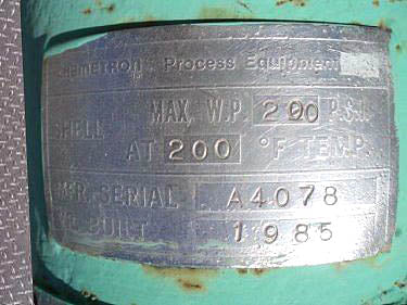 Cherry-Burrell Votator Scraped Surface Heat Exchanger- 4 x 120. Model: 2C4120LA. S/N: 35711VA. Jacket MAWP (ammonia side): 100 psi @ 100 °F. Shell MAWP (ammonia side): 200 psi @ 200 °F. Liquid indicator. (18)13-1/2 in. L x 2-3/4 in. W scrapers. Baldor Standard-E Motor, 3 hp, 1750 rpm, 230/460 V, 8.2/4.1 amps, 60 Hz, 3 phase. Inlets: (1) 3/4 in. dia. tube (ammonia), (1) 2 in. dia. S-Line fittings (product), (1) 2 in. dia. copper tube (media). Outlets: (1) 2 in. dia. tube (ammonia), (1) 2 in. dia. copper tube (media), (1) 2 in. dia. S-line fittings (product). Overall dimensions: 11 ft. 3 in. L x 3 ft. 7 in. W x 5 ft.10 in. (H13).