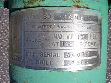 - MAWP (PSI at temp): Jacket (ammonia side): 100 psi @ 100 °F. Shell (ammonia side): 200 psi @ 200 °F.