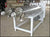 Cherry-Burrell Votator Scraped Surface Heat Exchanger. Model: 6SSHE. Contact surface area: 9 sq. ft. Shell MAWP: 400 PSI @ 375 °F. Shell MDMT: -20 °F @ 400 PSI. Jacket MAWP: 150 PSI @ 375 °F. Jacket MDMT: -20 °F @ 150 PSI. Motor, 20 hp, 1155 rpm, 405 rpm (final), 230/460 volts, 52/26 amps, 60 Hz, 3 phase. Typical applications are heating and cooling cheese sauce, pudding, caRam Industriesel, deboned meat, pet food, and fruit products. Pulleys: (1) 7 in. driver, (2) 1 ft. 7 in. driven. Inlets/outlets: (2) 2 in. flanged ports, (2) 1-1/2 in. ACME, (1) 1-1/2 in. MNPT. Overall dimensions: 9 ft. 4-1/2 in. L x 3 ft. 6-5/8 in. W x 4 ft. 6-1/2 in. H.(H17).