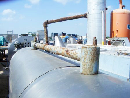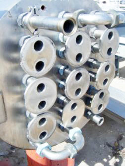 Chester-Jensen Co Ste-Vac Heater. Model: SV-20. Capacity: 18,000 lbs/hr (40 °F-90 °F), 20,000 lbs/hr (85 °F-190 °F), 20,000 lbs/hr (190 °F-230 °F). Number of tubes: 24. Length of inner tubes: 10 ft. Tube diameter: 1-1/2 in. The economical, no burn-on flavor saver. Steam heated and fully CIP'able. The Ste-Vac heater is specifically designed to heat milk and milk products without formation of milk stone or burn-on on the heating surfaces. Ste-vac heaters can be used in: powdered milk production as a pre-heater, pasteurizing cream as high-temperature-short-time pasteurizers, pre-heaters for fluid milk before entering vat pasteurizers, ice-cream mix processing, pre-heating milk for separators, and for pasteurizing milk in cheese production. Inlets: (1) 1 in. dia. NPT (female, media), (1) 1-1/2 in. dia. S-line fitting (product). Outlets: (1) 1 in. dia. NPT (male, media), (1) 1-1/2 in. dia. I-line fitting (product). Overall dimensions: 10 ft. 8 in. L x 33-1/2 in. W x 74 in. H. (XMR5)