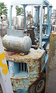 Clark Forklift. Model: C500Y55. S/N: Y3552452550. Motor, Model: D-155-G, S/N: 225256. Number of cylinders: 4. Fuel: propane. (2) Front Tires: 7.00-15. (2) Back Tires: 6.50-10. Overall dimensions: 103 in. L x 41 in. W x 88 in. H.