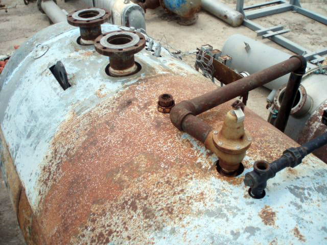 - Tank Inlets & Outlets Description: Inlets: (2) 5 in. dia. flanged ports. Outlets: (1) 10 in. dia. flanged port, (1) 2 in. dia. NPT fitting (relief valve), (1) 1 in. dia. low water cut off port, (1) 2 in. dia. drain port.