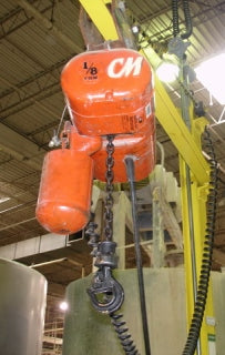 CM 1/8-Ton Electric Chain Hoist. Including Boom and Steel Bench.