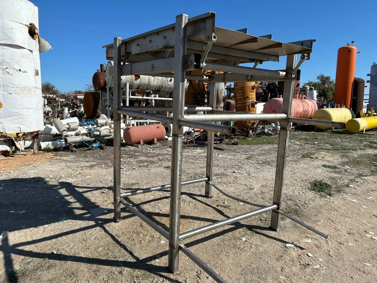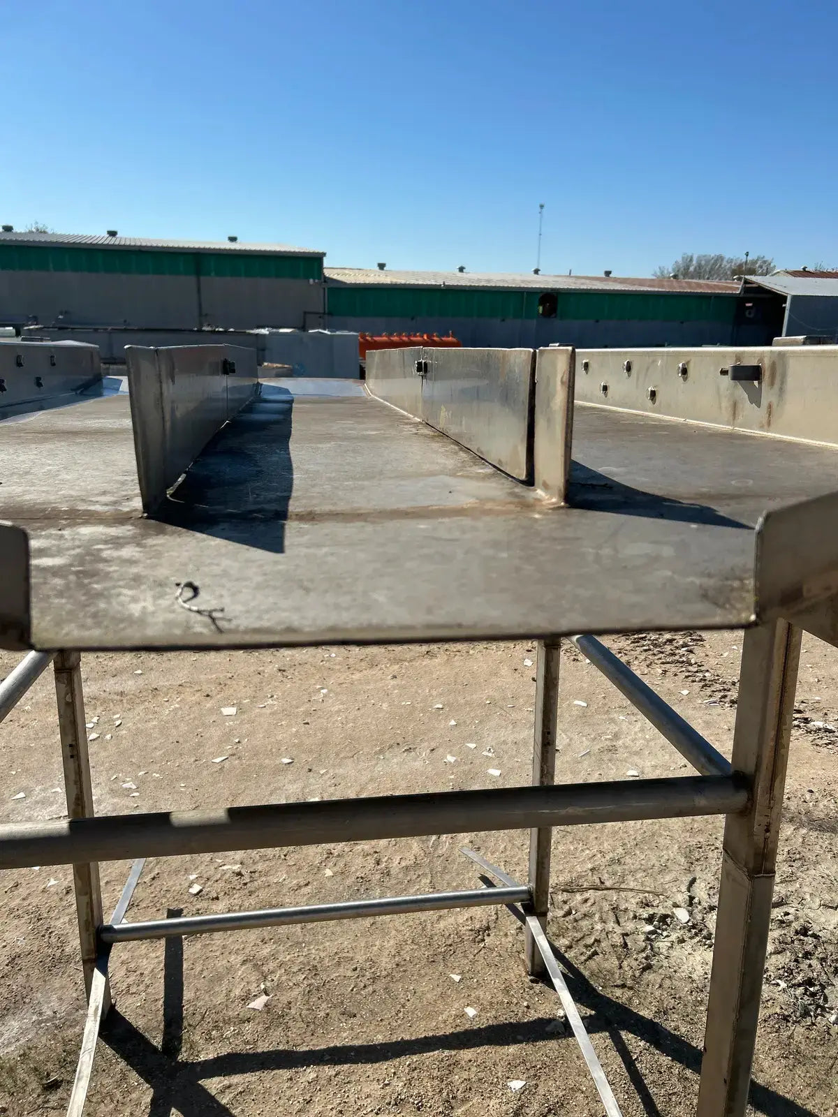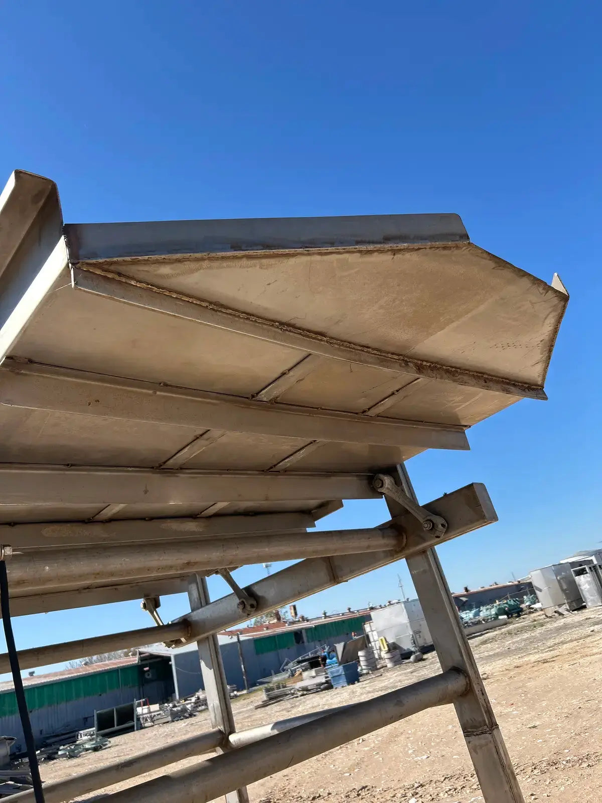 Commercial Manufacturing Company Supply Vibrating Shaker. Job No: Z178. Equipped with (8) Rocker Leaf Arms. Three section platform dimensions: (2) 85-1/2 in. L x 19-1/2 in. W x 5-1/2 in., (1) 85-1/2 in. L x 14 in. W x 5-1/2 in. H. Infeed height: 86-1/2 in. Exit height: 83 in. Overall dimensions: 9 ft 6-1/2 in. L x 65 in. W x 90 in. H.(H19).