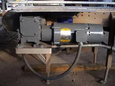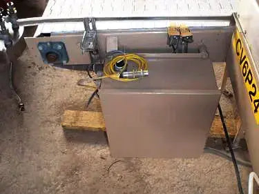 Conveyor Section with Reject Mechanism. Belt dimensions: 48 in. L x 12 in. W. Reject mechanism pneumatically operated; (2) sensors. Baldor motor: 5 hp, 1,725 rpm, 208-230/460 V, 1.9/.9 amps, 60 Hz, 3 phase. Ideal for placement immediately after metal detectors and checkweighers for defective product ejection. Overall dimensions: 4 ft. L x 4 ft. 10 in. W x 2 ft. 9 in. H.(H16).