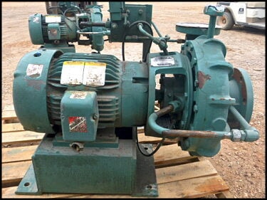 2002 Cornell Centrifugal Ammonia Pump. Flow rate for new pump is 137 gpm with required horsepower and pressure. Discuss with salesperson your process to determine if this pump should handle your specific duty. Material: carbon steel. Impeller size: 12 in. Baldor industrial motor: 7.5 HP, 230/460V, 1760 RPM, 60Hz, 3-phase (also rated for 190/380V, 50Hz). Port sizes 2.5 in. flange, 4 in. flange. Overall dimensions: 1 ft. 10-3/4 in. L x 1 ft. 7-3/4 in. W x 2 ft. 3-1/4 in. H.