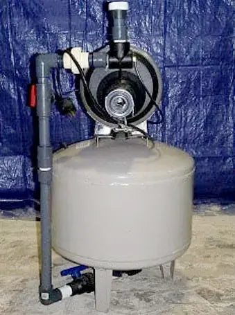 Alamo brand water filter. Overall dimensions: 1 ft. 4 in. dia x 6 ft. 1 in. H.