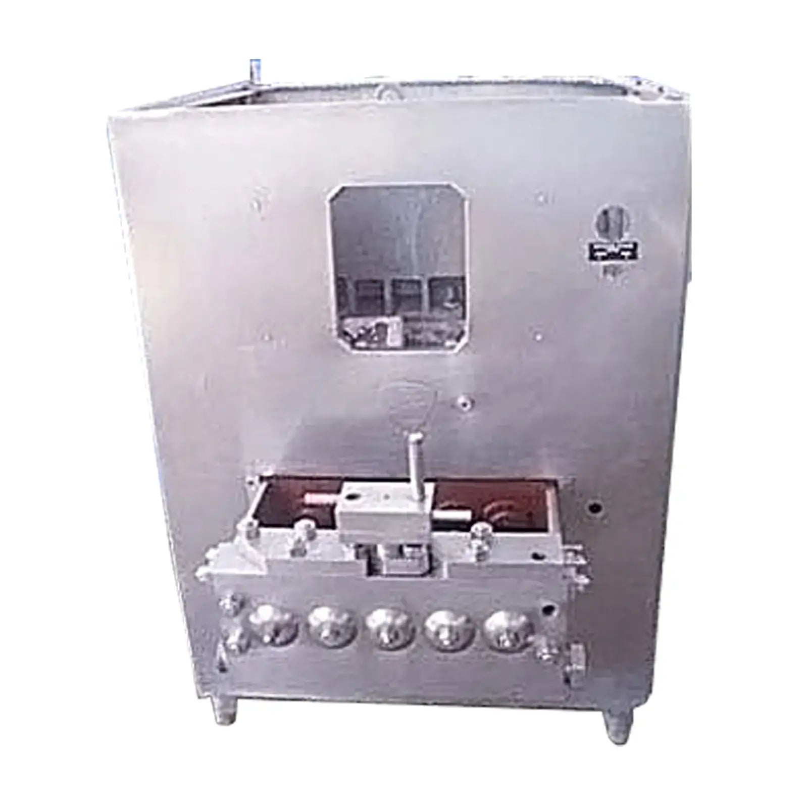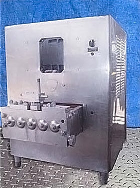 Crepaco Creamery Package Homogenizer. Model: 5DD650. S/N: 2789. A-3 sanitary rated. Currently setup as a pump, homogenizing valve(s) can be added. Pressure and flowrate can be modified/adjusted to suit your needs. Single stage hydraulic valve assembly. Plunger diameter: 2-1/2 in. Spring loaded poppet seat valve cylinders. Toshiba Electric Motor, 100 hp, 1180 rpm, 310 rpm (final), 230/460 V, 246/123 amps, 60 Hz, 3 phase. Motor pulley diameter: 11-1/2 in. Gear pulley diameter: 44 in. Pulley ratio: 3.8. Leeson Hydraulic Power Pack, 1/2 hp, 1725/1425 rpm, 208-230/460 V, 60/50 Hz, 3 phase. Inlets: (1) 3 in. ACME fitting. Outlets: customer specified. Overall dimensions: 6 ft. 3 in. L x 4 ft. 11 in. W x 6 ft. 10 in. H.