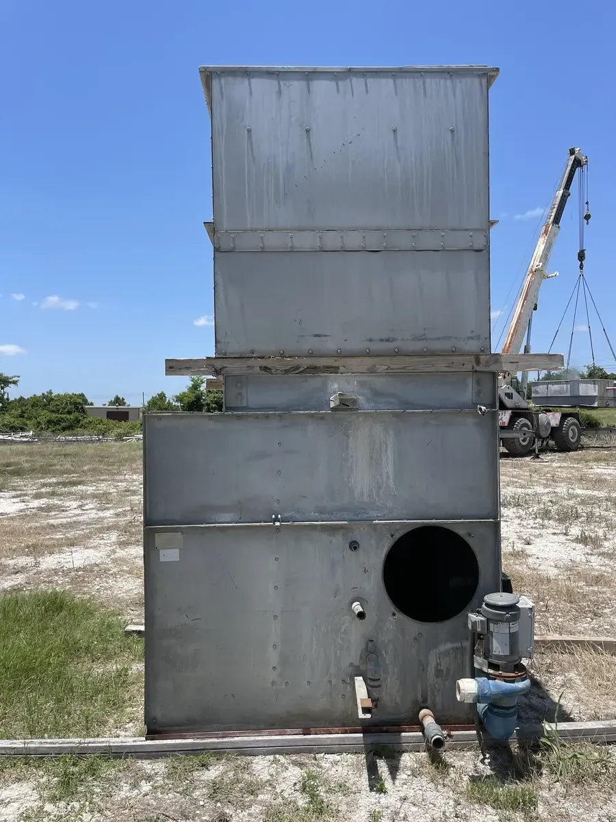 Crepaco PMC-250 Evaporative Condenser (250 Nominal Tons, 3 Motors, 1 Tower Unit). Serial Number: 834265. This package contains 1 Tower Unit. 250 Nominal Tons. 177 Ammonia Tons. Previously Ran with Ammonia (R717 | NH3). 3 HP Motors are included.