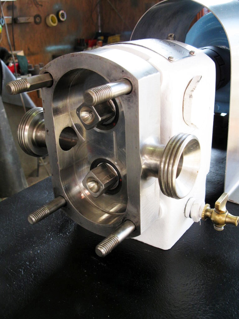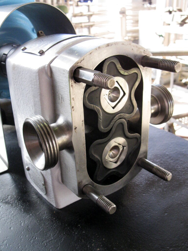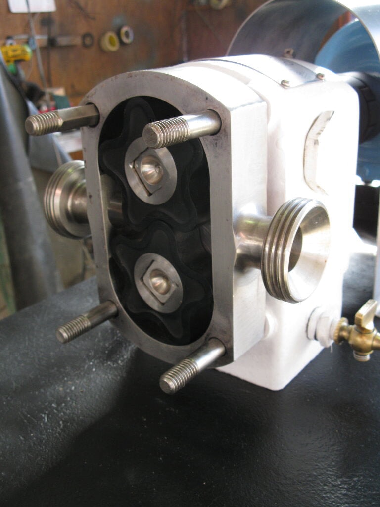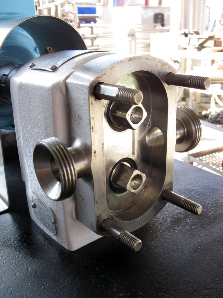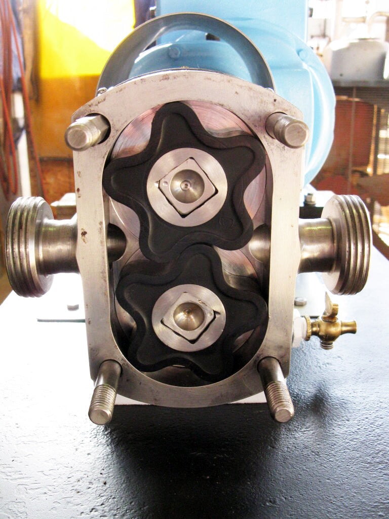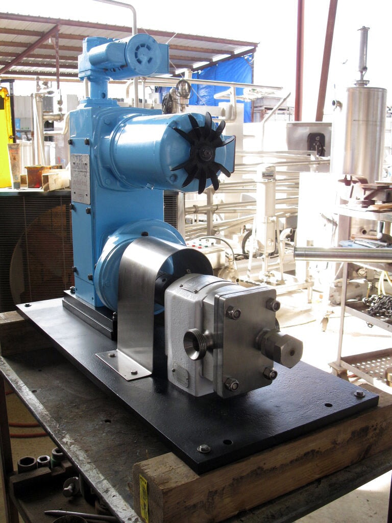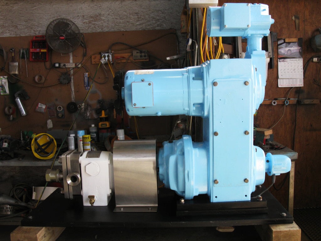 Crepaco Positive Displacement Pump. Model: R2R. S/N: D-2263. Flow rate for new pump is 6 gpm with required horsepower and pressure. Discuss with salesperson your process and product to determine if this pump should handle your specific duty.(2) 3 in. rotors. Marathon Electric motor. Motor drive: 1 Hp, 1800 rpm motor input, output rpm: 370 max, 123 min, 575 V, 1.2 A, 60 Hz, 3 Phase, 4.13 Gear ratio. Inlet/outlet: (2) 1-1/2 in. Acme ports. Overall dimensions: 3 ft. 1/2 in. L x 1 ft. 3 in. W x 2 ft. 4-1/4 in. H.