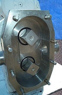 Crepaco R4R Positive Pump. Size: R4R. S/N: A4558. Current capacity at max/min drive rpm: 90/18.2 gal. Maximum capacity: 90 gpm. Maximum speed: 900 rpm. Reliance Electric motor, 1750rpm, 230/460 V, 26/13 amps, 60 Hz, 3 phase. Reeves motor drive, size: 331, ratio: 6.2, 7-1/2 hp, output speeds: 520 rpm maximum, 104 rpm minimum. Complete parts interchangeability. Easy disassembly and cleanup, low maintenance. Typical applications: fruit cocktail, yogurt, alcoholic beverages, doughs, chocolate and shampoo. Start/stop switch. Pump inlet/outlets: 2 in. 'S' line. Overall dimensions: 45 in. L x 45 in. W x 36 in. H.