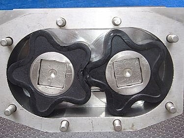 Crepaco R4RT Positive Displacement Pump. Model: R4RT. S/N: D-3666. Maximum Capacity: 90 Gpm. Displacement: 17.50 Gpm/100 Revs. Maximum power: 20 BHP. Max. Rpm: 900. The pump is known for their rugged, long-lasting and efficient performance. It has a standard stainless steel body, resilient molded rotors, and a heavy duty cast iron gear case which provides long-lasting, economical service over a wide range of products and applications. Easy disassembly and cleanup, low maintenance. Typical applications: fruit cocktail, yogurt, alcoholic beverages. Inlet: (1) 9-1/4 in. L x 1-3/4 in. W. Overall Dimensions: 15-1/4 in. L x 14-1/4 in. W x 8-1/2 in. H.
