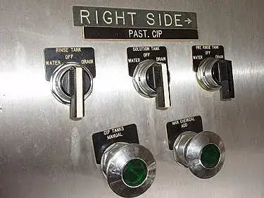 Crepaco Stainless Steel 3-Tank CIP System. (3) 150 gallon stainless steel CIP tanks. Inside tank dimensions: 2 ft. 10 in. dia. x 4 ft. 2 in. H. Overall dimensions: 3 ft. 5 in. dia. x 6 ft. 1 in. H. 1999 ITT Bell & Gossett shell and tube heat exchanger. Heat transfer surface area: approx. 34.5 sq. ft. Capacity: 4.03 gallons. Shell and tube side MAWP: 150 psi @ 375 °F. Shell and tube side MDMT: - 20 °F @ 150 psi. APV Crepaco centrifugal pump. Model: 6V. Flow rate for new pump is 140 gpm with required horsepower and pressure. Also includes APV Crepaco control panel, chart recorder, thermocouples, air operated sanitary valves, Magna control valves and computerized controllers and sensors.