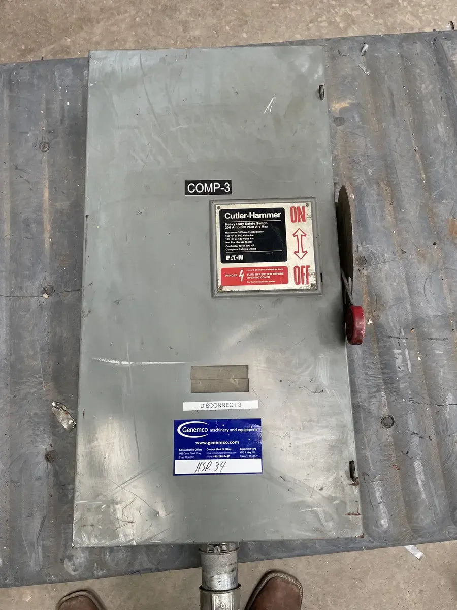 Cutler-Hammer Heavy Duty Safety Switch. Cat. No: DH364FGK, 200 AMP. Heavy Duty Safety Switch. Volts: 480/600. 3 Phase. Type 1 Indoor. NEMA 1. Fusible without neutral. Max HP: 150. Number of Wires: 3.