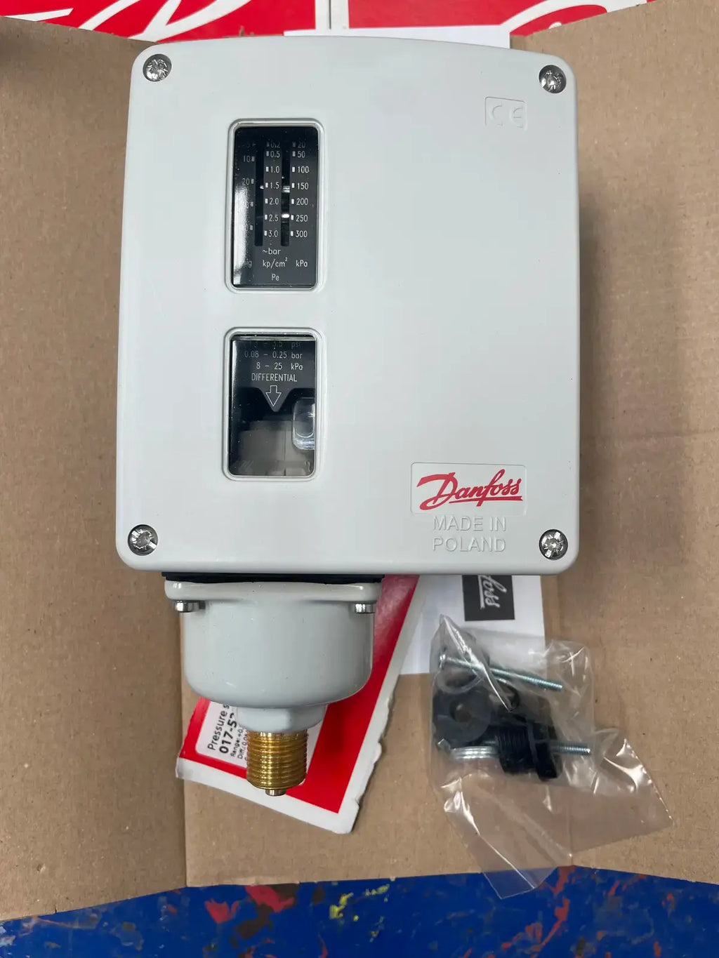 Danfoss Pressure Switch. Item No: 017-529166. Range: +0.2/+3bar. Contact Type: SPDT.