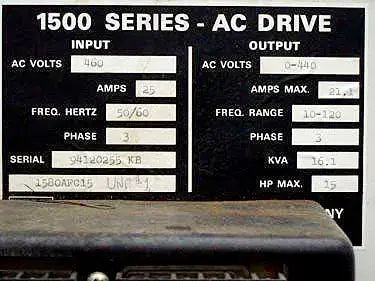 - If Multiple Motors, Motor Descriptions vs specs: Input: 460 V, 25 amps, 50/60 Hz, 3 phase. Output: 0-440 V, 21.1 amps, 10-120 Hz, 3 phase, 16.1 KVA.