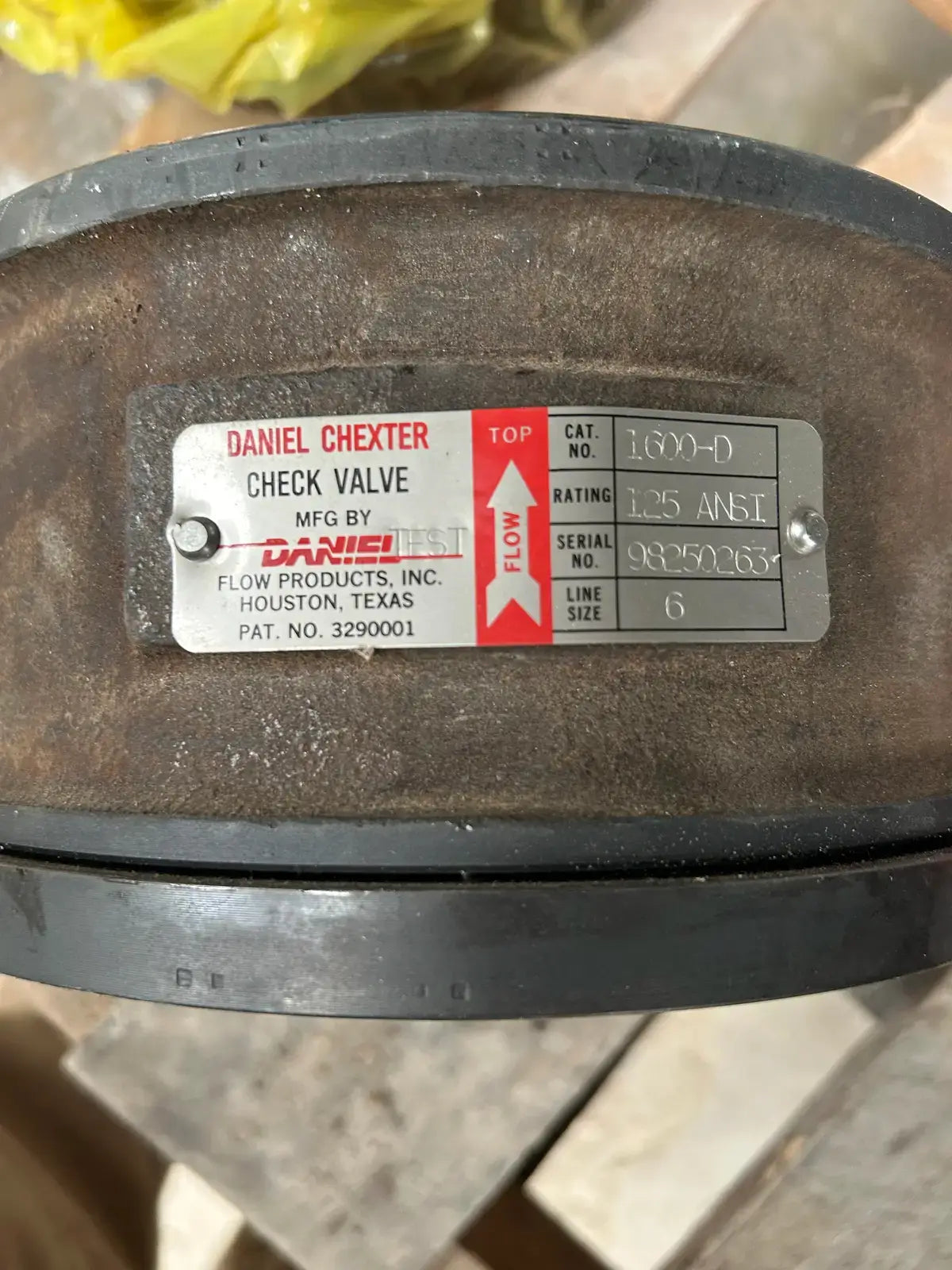 Daniel Chexter Check Valve. Serial No: 98250263. CAT No: 1600-D. Rating: 125 ANSI. Line Size: 6 Inch.